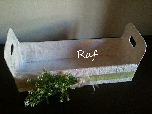 Oggi vi propongo una cesta portaconi (utile per il momento del lancio del riso o della confettata) abbellita con un nastro verde mela e con un ramoscello di fiori.